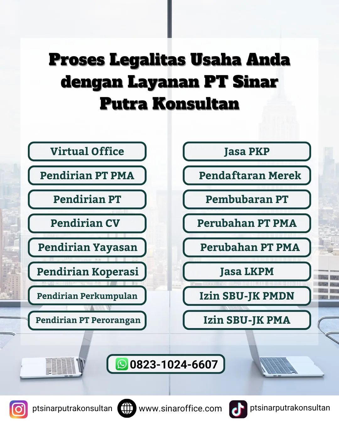 Spesial untuk Anda! Kami tawarkan layanan pendirian PT PMA biaya terjangkau, proses aman dan mudah dengan promo eksklusif dan kuota terbatas! Jangan lewatkan kesempatan ini.